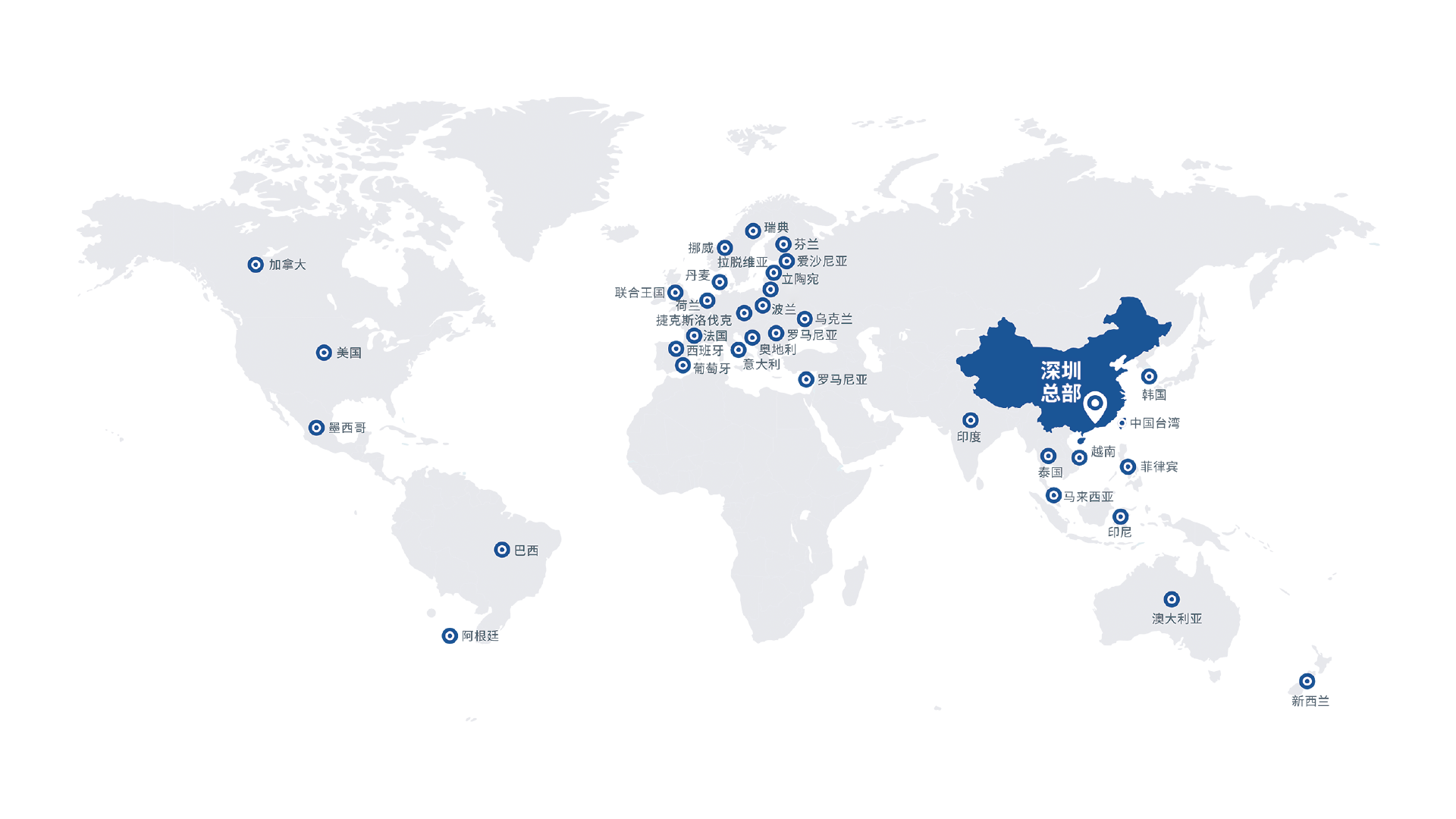 立足于國(guó)內(nèi)深圳、張家港、常州、天津、長(zhǎng)沙、蘇州、濟(jì)南生產(chǎn)基地與備品備件庫(kù),國(guó)內(nèi)外轄180+辦事處,在100多個(gè)國(guó)家和地區(qū)設(shè)立銷(xiāo)售服務(wù)機(jī)構(gòu),為全球用戶(hù)提供高品質(zhì)的產(chǎn)品與優(yōu)質(zhì)高效的服務(wù)。